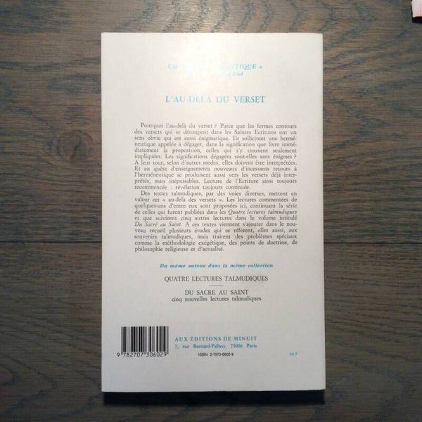 Uitgeverij: Les éditions de minuit - 1986Auteur: Emmanuel Levinas234 Blz