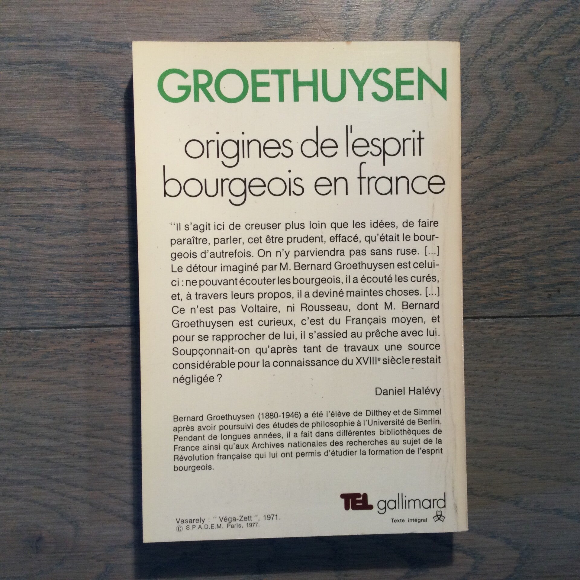 Uitgeverij: TEL-gallimard - 1977Auteur: Groethuysen300 Blz