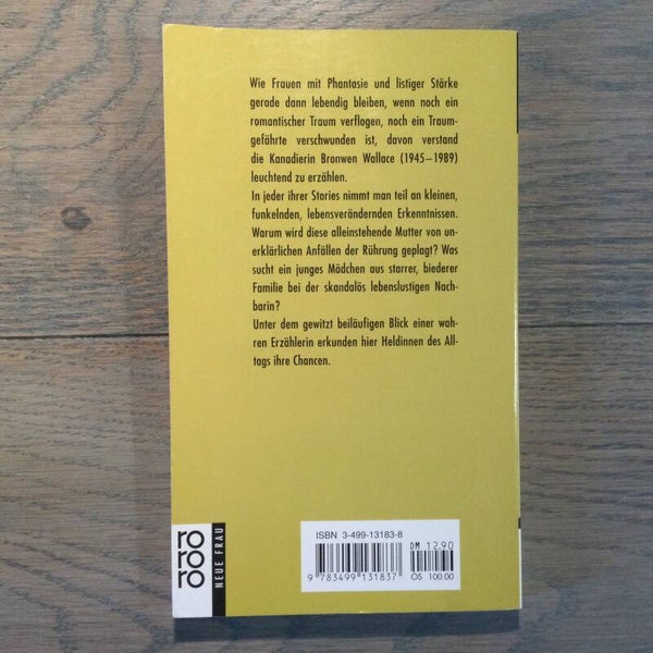 Wie Frauen mit Phantasie und listiger Stärke gerade dann lebendig bleiben, wenn noch ain romantischer Traum verflogen, noch ein Traumgefährte verschwunden ist, davon verstand die Kanadierin Browen Wallace (1945-1989) leuchtend zu erzählen.