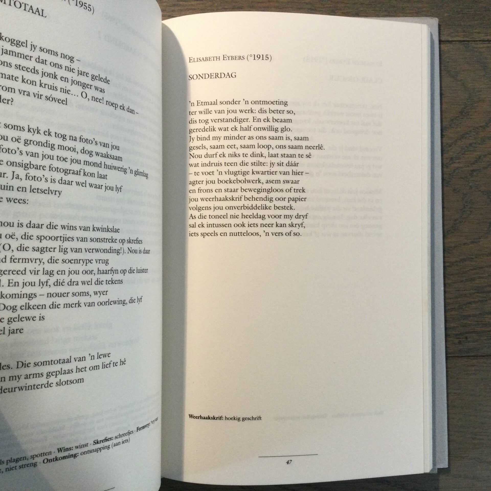 Verstaan my verlangste bevat sterke gedichten van namen uit de Zuid-Afrikaanse canon: Breytenbach, Eybers, Krog, Van Wyk Louw… En meesterwerkjes van minder bekende, jonge dichters. Ze bewijzen hoe gevarieerd de Afrikaanse poëzie is. En hoe relatief nieuw voor Vlaanderen.