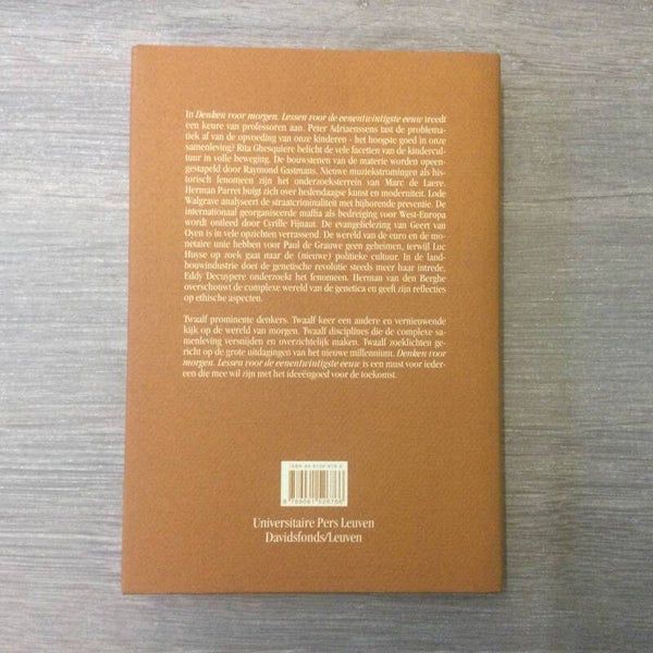In Denken voor mogen. Lessen voor de eenentwintigste eeuw treedt een keure van professoren aan. Peter Adriaenssens tast de problematiek af van de opvoeding van onze kinderen - het hoogste goed in onze samenleving? Rita Ghesquiere belicht de vele facetten van de kindercultuur in volle beweging. De bouwstenen van de materie worden opeengestapeld door Raymond Gastmans. Nieuwe muziekstromingen als historisch fenomeen zijn het onderzoeksterrein van Marc de Laere. Herman Parret buigt zich over hedendaagse kunst en moderniteit. Lode Walgrave analyseert de straatcriminaliteit met bijbehorende preventie.