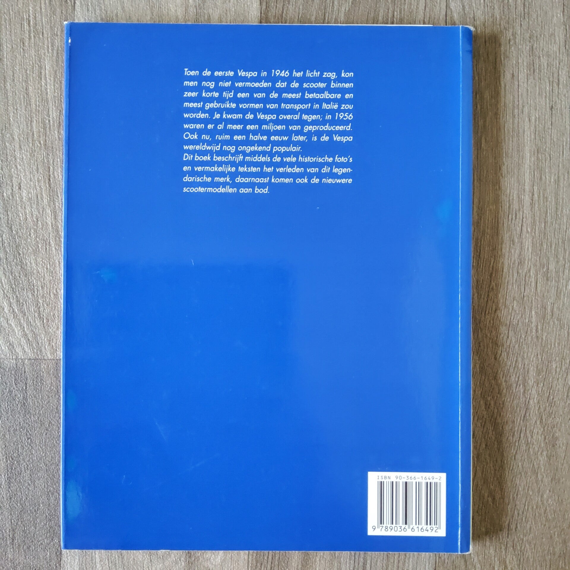 Toen de eerste Vespa in 1946 het licht zag, kon men nog niet vermoeden dat de scooter binnen zeer korte tijd een van de meest betaalbare en meest gebruikte vormen van transport in Italië zou worden. Je kwam de Vespa overal tegen; in 1956 waren er al meer dan een miljoen van geproduceerd. Ook nu, ruim een halve eeuw later, is de Vespa wereldwijd ongekend populair. Dit boek beschrijft middels de vele historische foto’s en vermakelijke teksten het verleden van dit legendarische merk, daarnaast komen er ook nieuwere scootermodellen aan bod.