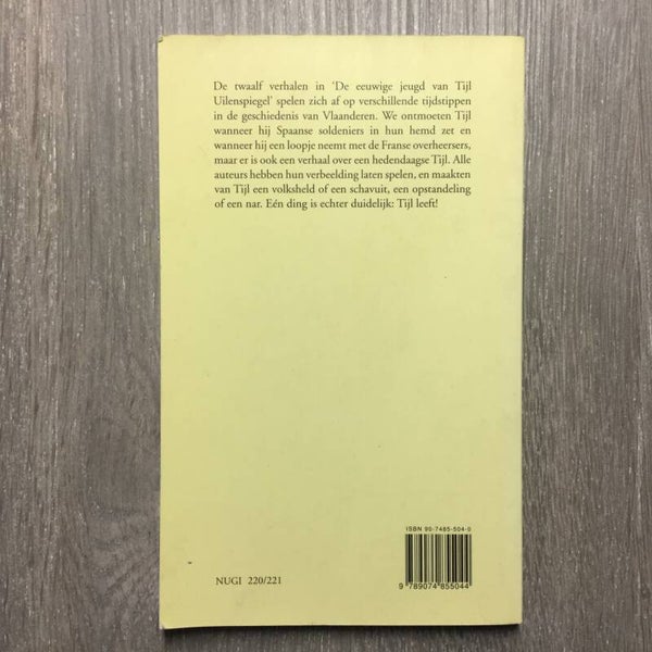 De twaalf verhalen in 'Deeeuwige jeugd van Tijl Uilenspiegel' spelen zich af op verschillende tijdstippen in de gescheidenis van Vlaanderen. We ontmoeten Tijl wanneer hij Spaanse soldeniers in hun hemd zet en wanneer hij een loopje neemt met de Franse overheersers, maar er is ook een verhaal over een hedendaagse Tijl. Alle auteurs hebben hun verbeelding laten spelen, en maakten van Tijl een volksheld of een schavuit, een opstandeling of een nar. Eén ding is echter duidelijk: Tijl leeft!
