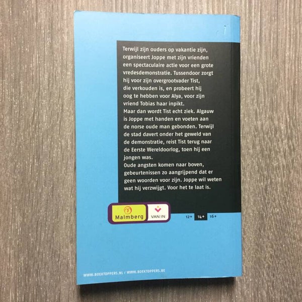 Terwijl zijn ouders op vakantie zijn, organiseert Joppe met zijn vrienden een grote vredesdemonstratie. Tussendoor zorgt hij voor zijn overgrootvader Tist, die verkouden is, en probeert hij oog te hebben voor Alya, voor zijn vriend Tobias haar inpikt. Maar dan wordt Tist echt ziek. Algauw is Joppe met handen en voeten aan de oude norse man gebonden.Terwijl de stad davdert onder het geweld van de demonstratie, reist Tist terug naar de Eerst wereldoorlog, toen hij een jongen was. Oude angsten komen naar boven, gebeurtenissen zo aangrijpend dat er geen woorden voor zijn. Joppe wil weten wat hij verzwijgt. Voor het te laat is, ...