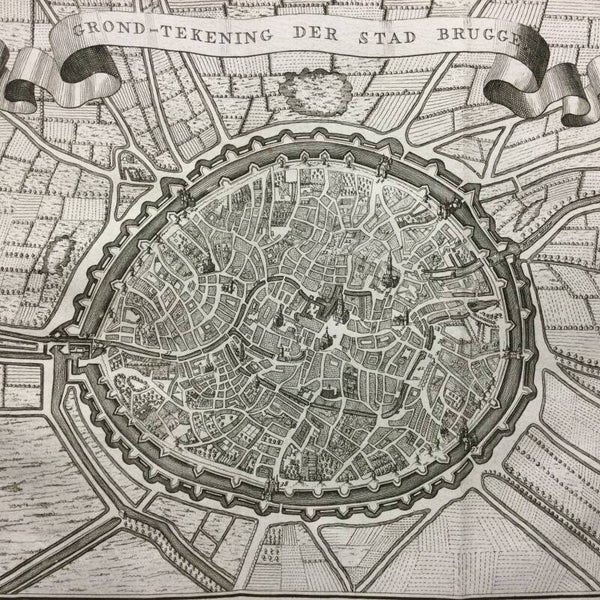 Originele kopergravure van het grondplan van de stad Brugge.Uitgegeven door Isaak Tirion-Amsqterdam-1738Verso zijde: blanco