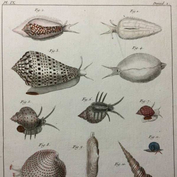 Fig 7:Buccin à fond rouge et quelquefois à fond brun avec des points blancs dis posés en ligne spirale, represente avec son animal