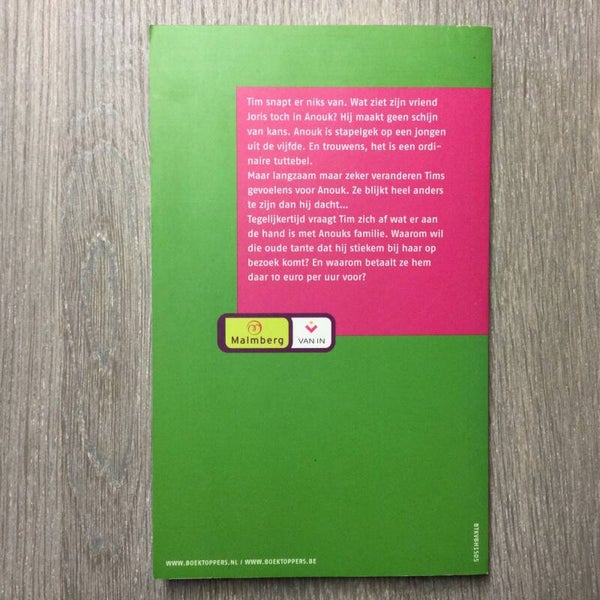 Wat een slettenbak is die Anouk toch. Tim snapt echt niet waarom Joris haar zo achterna loopt. Het zet hun vriendschap onder druk: Joris is niet te genieten, omdat Anouk hem afwijst. Maar dan blijkt dat Anouk wel iets in Tim ziet. En dan moet Tim toch bekennen dat ze heel anders is dan hij dacht... Tegelijkertijd vraagt hij zich af wat er toch aan de hand is met Anouks familie. Want waarom wil haar oudtante zo graag dat juist hij bij haar op bezoek komt voor 10 euro per uur?