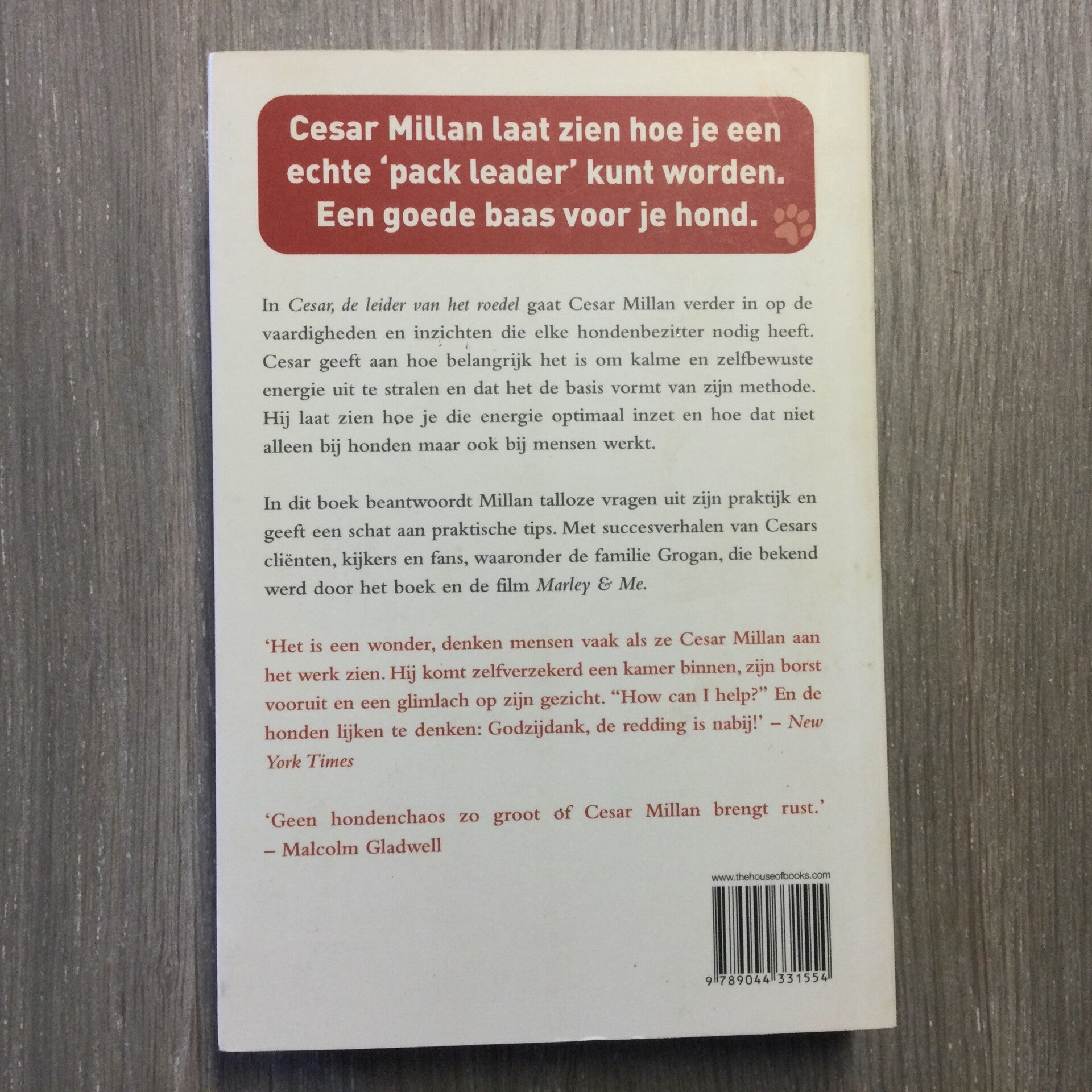 Cesar talloze vragen uit zijn praktijk en geeft een schat aan praktische tips. Met succesverhalen van Cesars cliënten, kijkers en fans, waaronder de familie Grogan, die bekend werd door het boek en de film Marley & Me.
