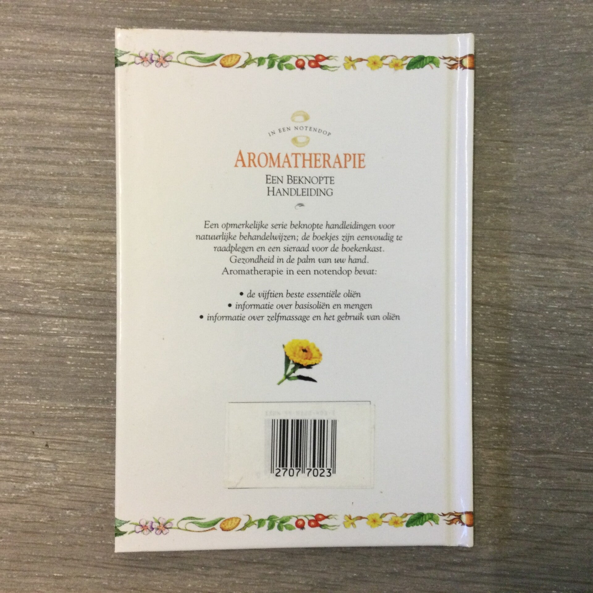Aromatherapie in een notendop bevat:De vijftien beste essentiële oliënInformatie over basisoliën en mengenInformatie over zelfmassage en gebruik van oliën