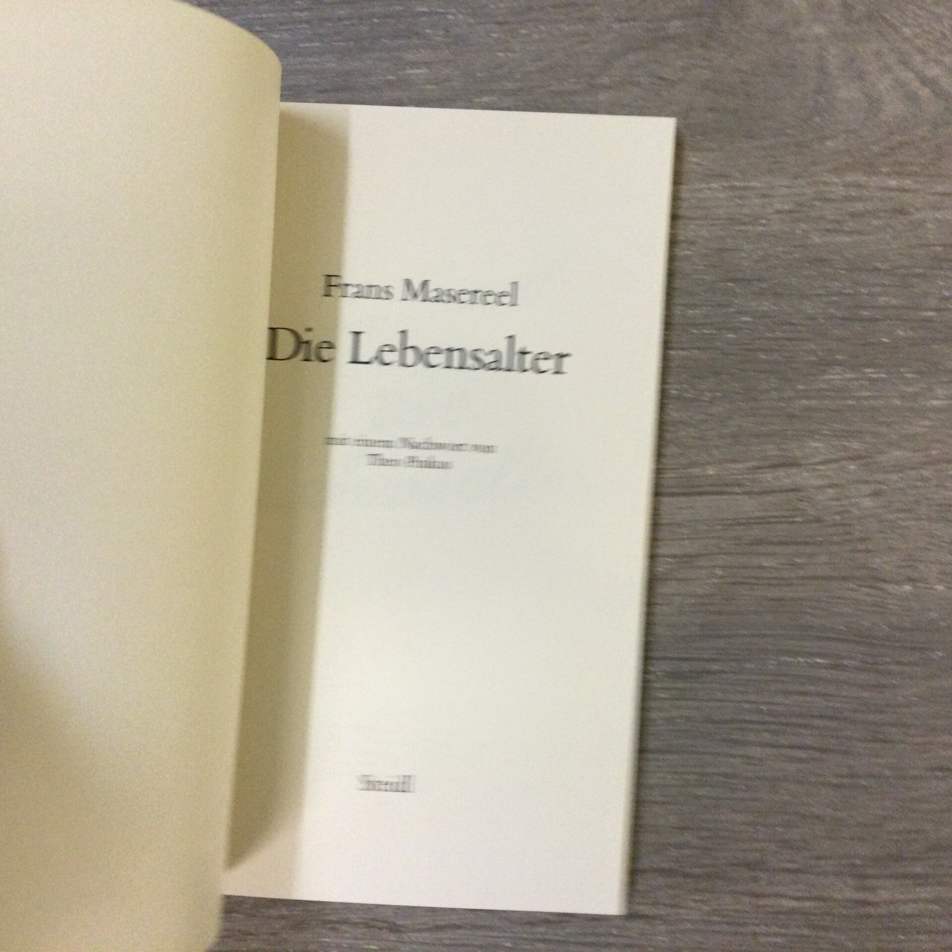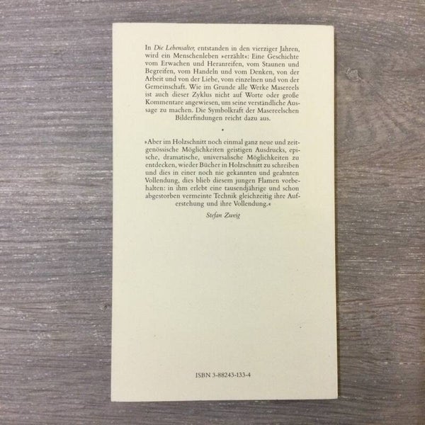 Nawoord door Theo Pinkus. OKart. met afb. Envelop 44nn. blad op 35 volledige pagina. houtsneden. Taal: Duits, Eerste editie van deze versie. - Verkleinde facsimile van de eerste druk "Les Ages de la Vie" uit 1948. - In het boek: 1e druk oktober 1989, boekhoogte 19,3 cm). - Nieuw exemplaar.
